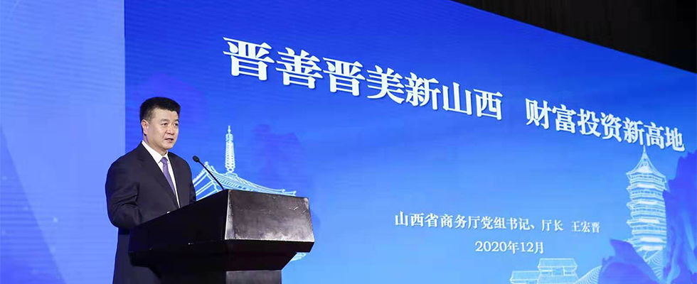 ▲ 山西省商务厅党组书记、厅长王宏晋作推介
