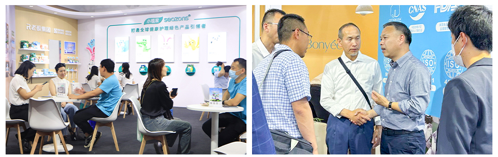 邦怡、小植家共同参展、各具特色。邦怡在展示OEM、ODM能力的同时,也向行业展示了打造国内一流无纺制品制造企业的企业战略目标的决心。其中,个人护理和家庭清洁类产品客户普遍较为关注,尤其在满足市场和解决消费痛点需求上提出了更多要求。