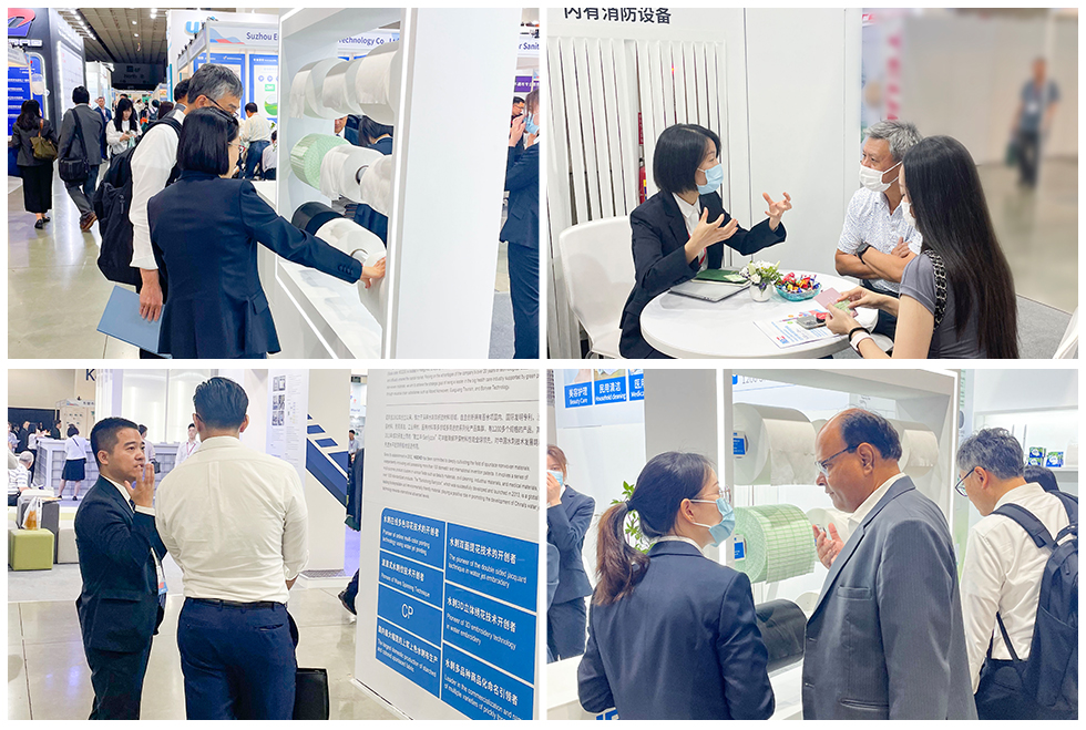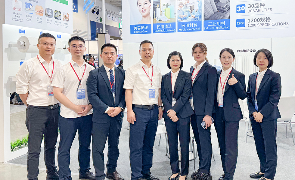 我司高端差异化产品吸引了大量来自日本、韩国和东南亚地区的客户与来宾,通过与本届展会友商和客户的交流,环保可降解和可冲散材料成为焦点和关注的热点,未来水刺行业也会继续朝着低碳、绿色环保方向发展。