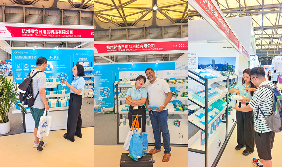 自2006年创立以来,邦怡致力于深耕无纺制品OEM/ODM业务领域。本次展会上,邦怡以无纺制品领域多年技术沉淀和持续提升的生产能力,以及高端差异化的产品理念,吸引了包括韩国、巴基斯坦、印度等多国外宾洽谈交流,便携装个护产品和懒人抹布产品成为焦点和关注的热点,其满足了市场需求和解决了消费存在的一些痛点。