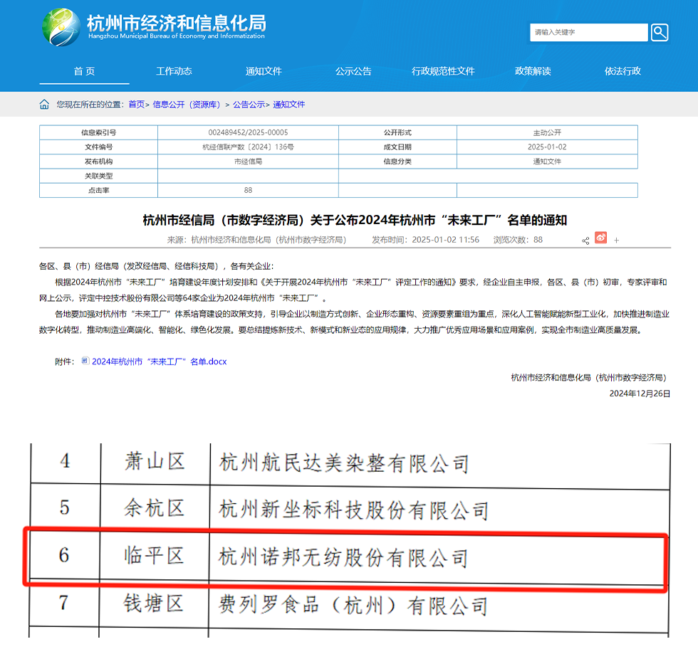 近日,杭州市经济和信息化局正式公布2024年杭州市“未来工厂”名单。经区县初审推荐、专家答辩评审、现场实地考察等环节,诺邦无纺喜获“杭州市智能工厂”荣誉称号。诺邦无纺作为推动非织造材料行业数智化发展的先行者,先后荣获“浙江省智能工厂”、“杭州市数字化车间”以及“杭州市智能工厂”等多项荣誉,其智能制造水平受到了各级政府部门的肯定。